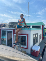 To keep your surfkini and our planet in best shape, rinse only and occasionally hand wash in cold water with mild soap, and lay flat on a towel or hang to dry.