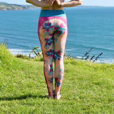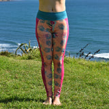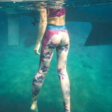 Eco Friendly Second Skin Swim & Surf Leggings in Peach Tropical Rhapsody With +50 UPF