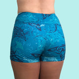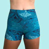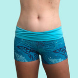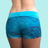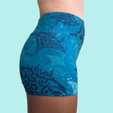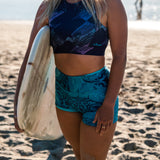 Eco Friendly Second Skin Reversible High Waisted Swim Short +50 UPF in Teal Manta Ray Camo